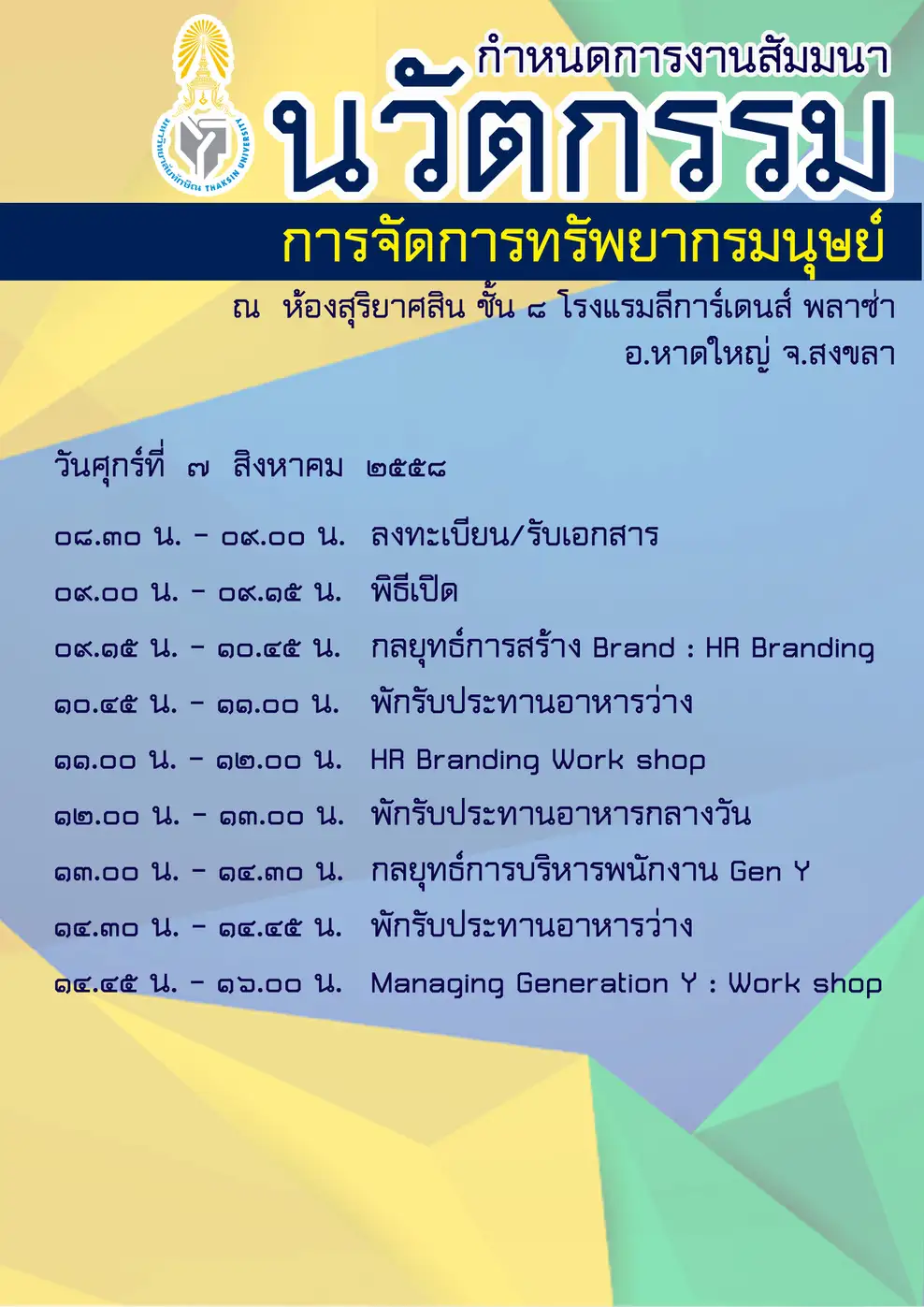 ณ ห้องสุริยาศศิน โรงแรมลีการ์เด้น พลาซ่า อ.หาดใหญ่ จ.สงขลา