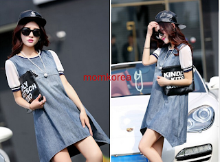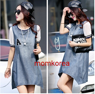 ** k2986 เดรสคลุมท้อง โทนสียีนส์ ผ้ายีนส์นิ่ม แขนแต่งด้วยผ้าซีฟอง งานดีค่ะ