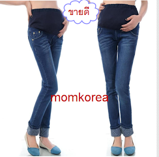 ** PK081 กางเกงยีนส์คนท้อง สียีนส์ มีผ้าพยุงท้อง ตรงเอวสามารถเลื่อนได้ตามอายุครรภ์ เป็นยืนส์ผ้ายืดค่ะ ใส่สบายค่ะ