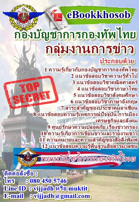 จำหน่ายไฟล์เอกสารแนวข้อสอบ กองบัญชาการกองทัพไทย ทุกกลุ่มงาน อัพเดทล่าสุด