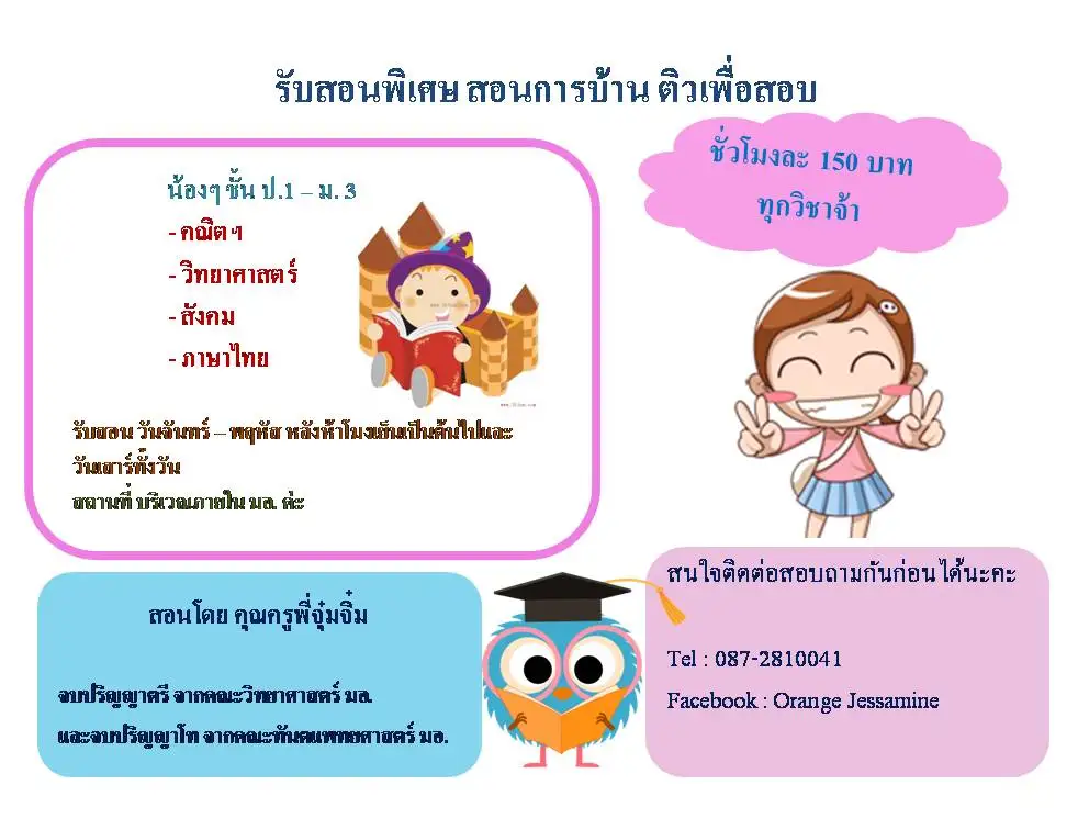 ชั่วโมงละ 150 บาท ทุกวิชาจ้า