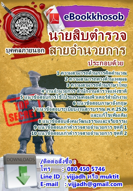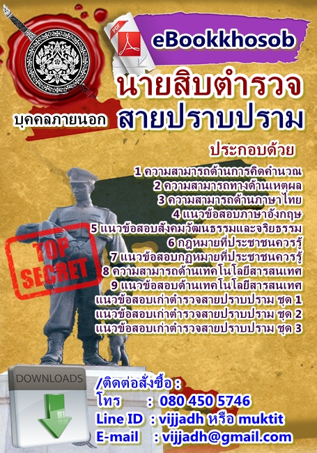 คู่มือสอบ แนวข้อสอบ นายสิบตำรวจ บุคคลภายนอก (ปราบปราม ธุรการ อำนวยการ ทุกกลุ่มงาน) ใหม่ล่าสุด พร้อมข้อสอบเก่าและเฉลย ตรงประเด็น ติดต่อสอบถามได้ที่ LINE ID : vijjadh  โทร 091 061 4598