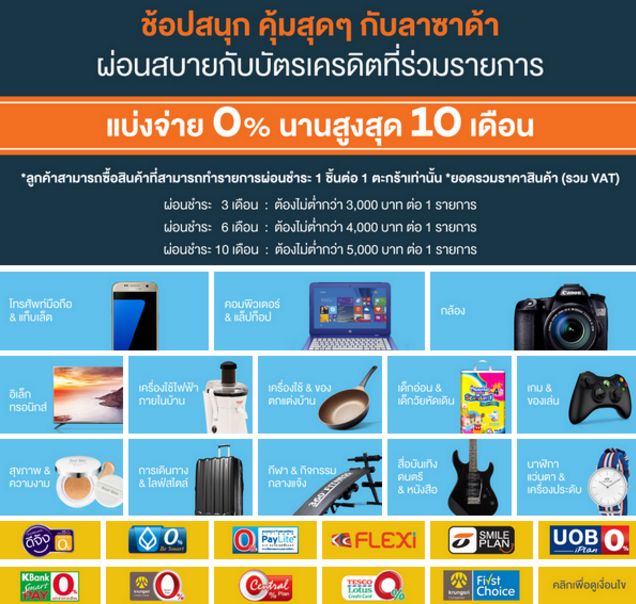 Lazada ผ่อนชำระเงิน 0 เปอร์เซนต์  โปรโมตชั่นผ่อนสินค้า Lazada ลาซาด้า ผ่อนชำระเงิน 0 เปอร์เซ็นต์