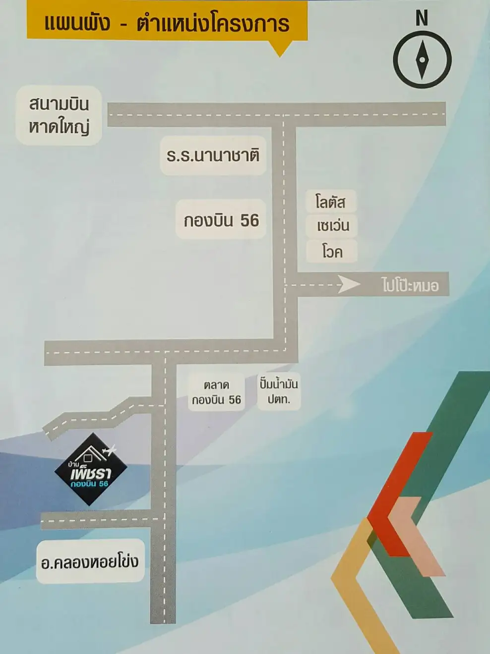 บ้านเดี่ยวชั้นเดียว บนเนื้อที่ 55 ตรว.  เพียง 5 นาที ถึงสนามบินหาดใหญ่ (ไม่มีเสียงรบกวนจากเครื่องบิน)