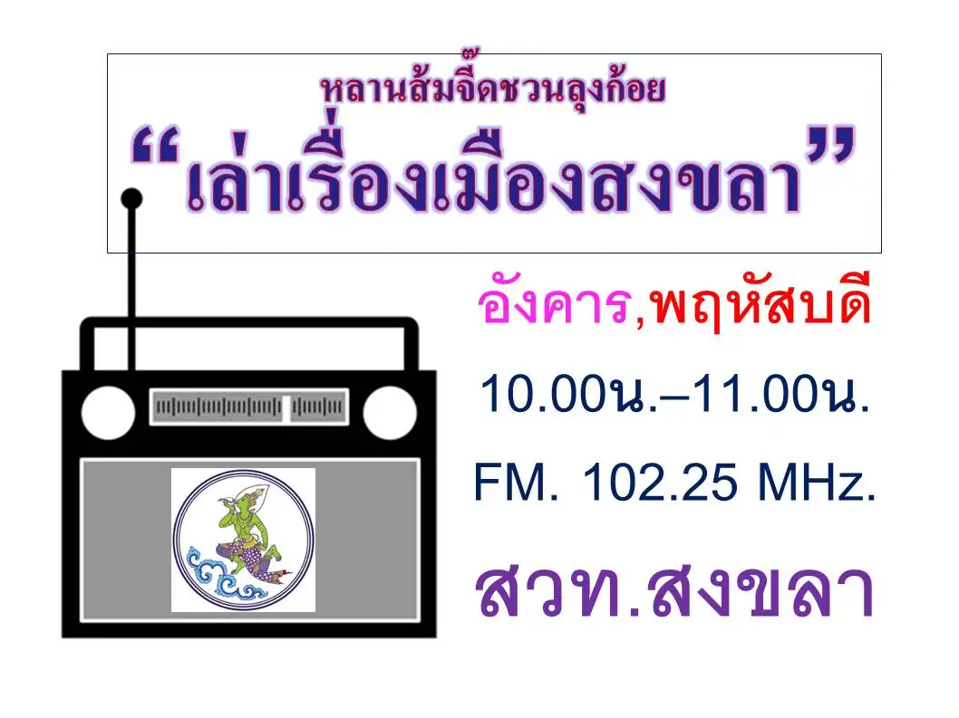 รายการวิทยุ "เล่าเรื่องเมืองสงขลา" สวท.สงขลา Fm102.25MHz อังคารและพฤหัสบดี 10.00-11.00น.