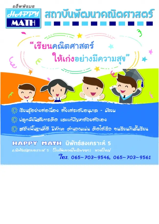 สนใจสอบถามเพิ่มเติมได้ที่ Happy Math หาดใหญ่-นิพัทธ์สงเคราะห์ 5   065-703 9546             สนใจสอบถามเพิ่มเติมได้ที่ Happy Math หาดใหญ่-นิพัทธ์สงเคราะห์ 5   065-703 9546