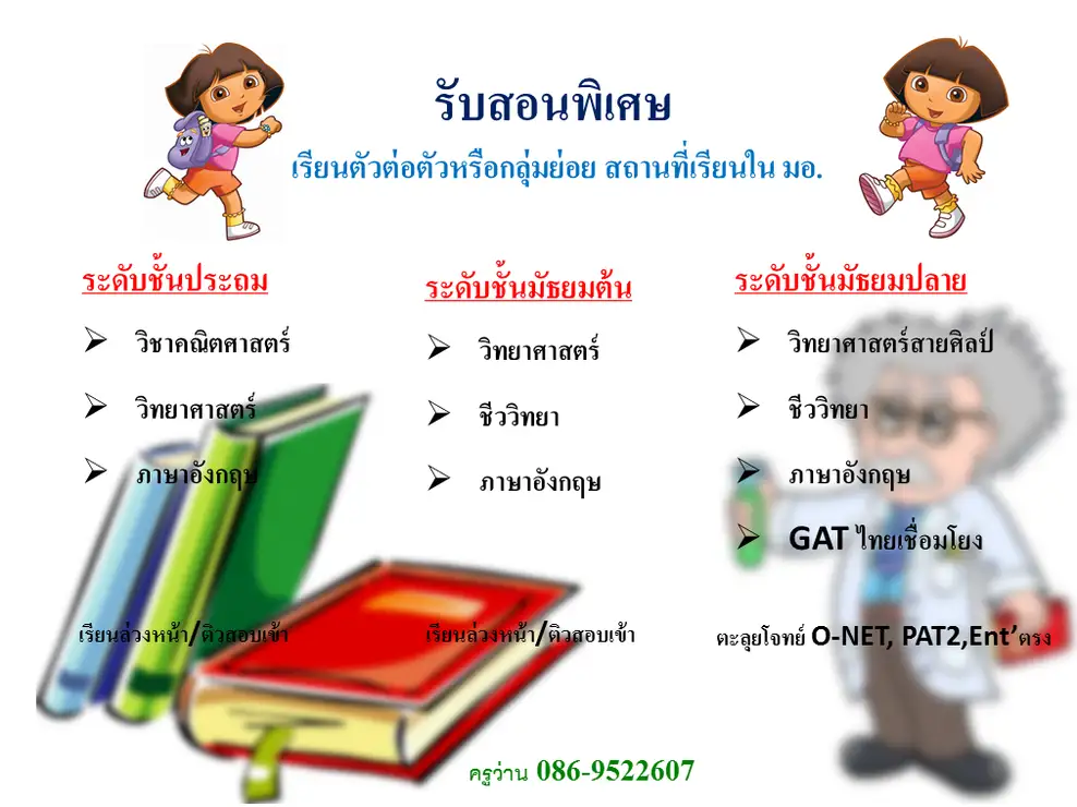 รับสอนพิเศษ คณิต วิทย์ อังกฤษ ชีวะ ทุกระดับชั้น