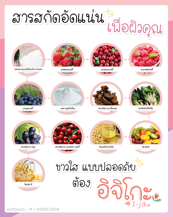 อีกทั้งยังมีสารสกัดจากสตรอว์เบอร์รี่ ,แครนเบอร์รี่ และราสพ์เบอร์รี่
