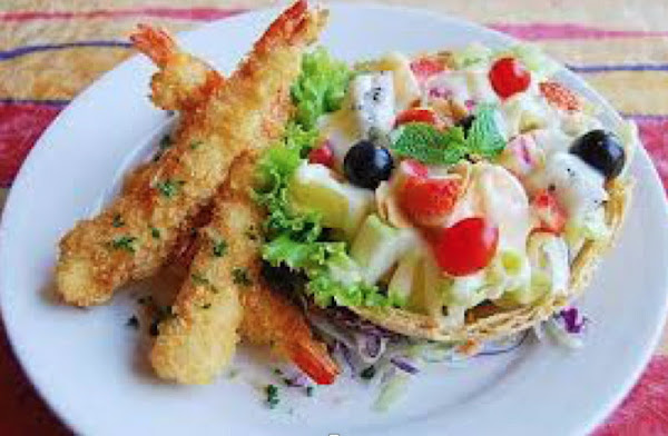 อาหารว่างที่มีประโยชน์ เช่น ผักทอดกรอบสีทอง ทานคู่กับน้ำสลัดสุขภาพ