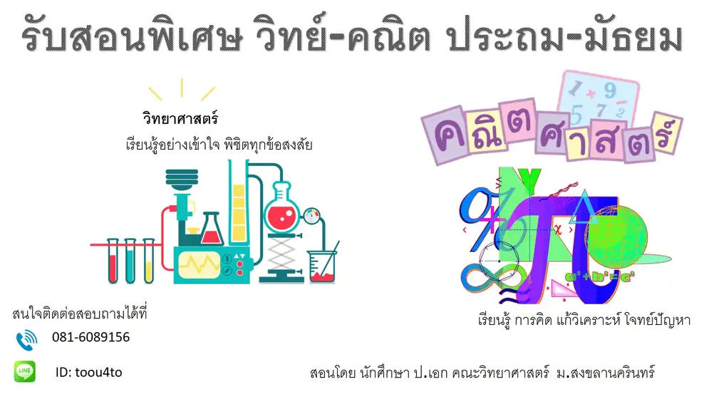 รับสอนพิเศษ คณิต-วิทย์-อังกฤษ Eng. Science/Math