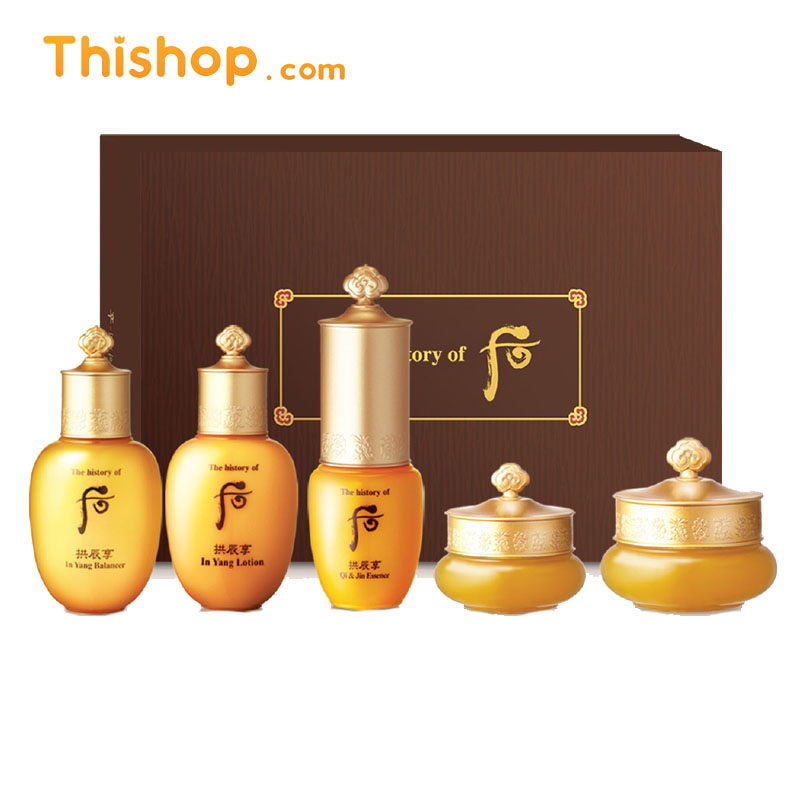 The History of Whoo GongJinHyang Special Gift 5 Itemsเซ็ตผลิตภัณฑ์บำรุงผิว เน้นสารสกัดจากสมุนไพร ช่วยเพิ่มความชุ่มชื่นให้แก่ผิว ให้ผิวที่แห้งกร้าน ดูสดใส ลดริ้วรอย ชะลอวัย Anti-aging ผิวสุขภาพดี เปล่งปลั่ง รูขุมขนกระชับ ภายในเซ็ตประกอบด้วย