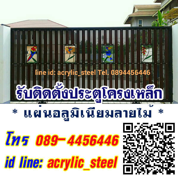 รับติดตั้งประตูรั้วเหล็กใส่แผ่นอลูมิเนียมลายไม้ โทร 089-445-6446 รับติดตั้งประตู