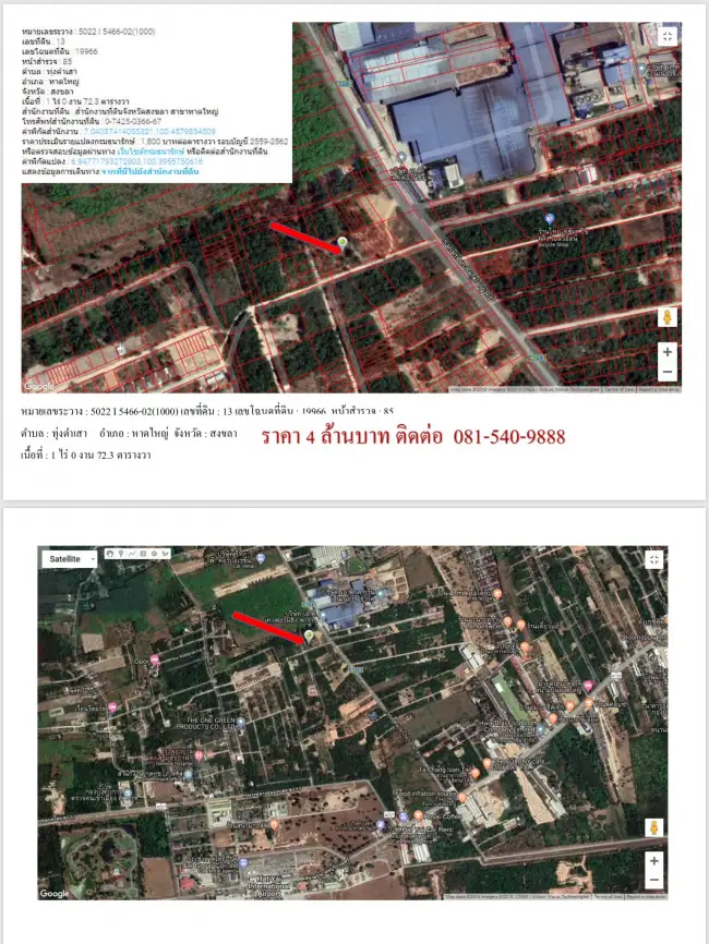ขายที่ดิน 1ไร่-0งาน-72.3 ตรว. ราคา 4 ล้านบาท ติดต่อ 081-540-9888