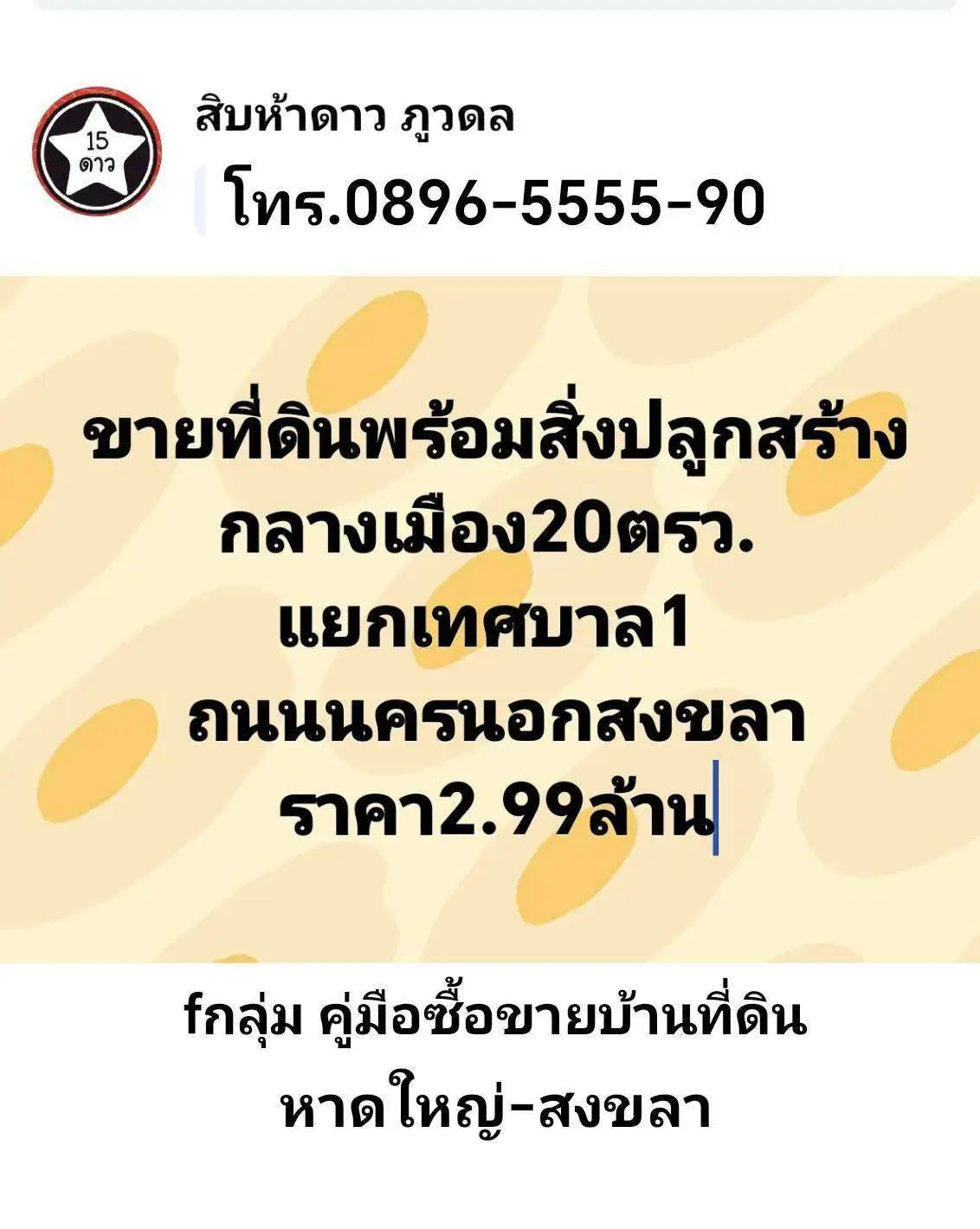 คู่มือซื้อขายบ้านที่ดินหาดใหญ่สงขลา ที่ดินพร้อมสิ่งปลูกสร้าง 20 ตรว. ที่ดินกลาง