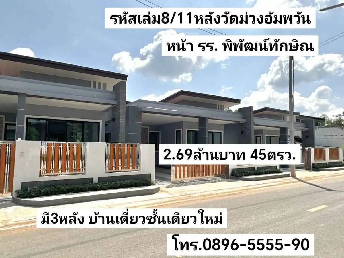 คู่มือซื้อขายบ้านหาดใหญ่ มี3หลัง บ้านเดี่ยวชั้นเดียวใหม่ ย่านแยกบิ๊กซีคลองแหหลังวัดม่วงอัมพวัน หน้า รร.พิพัฒน์ทักษิณ หาดใหญ่ ขาย2.69ล้านบาท