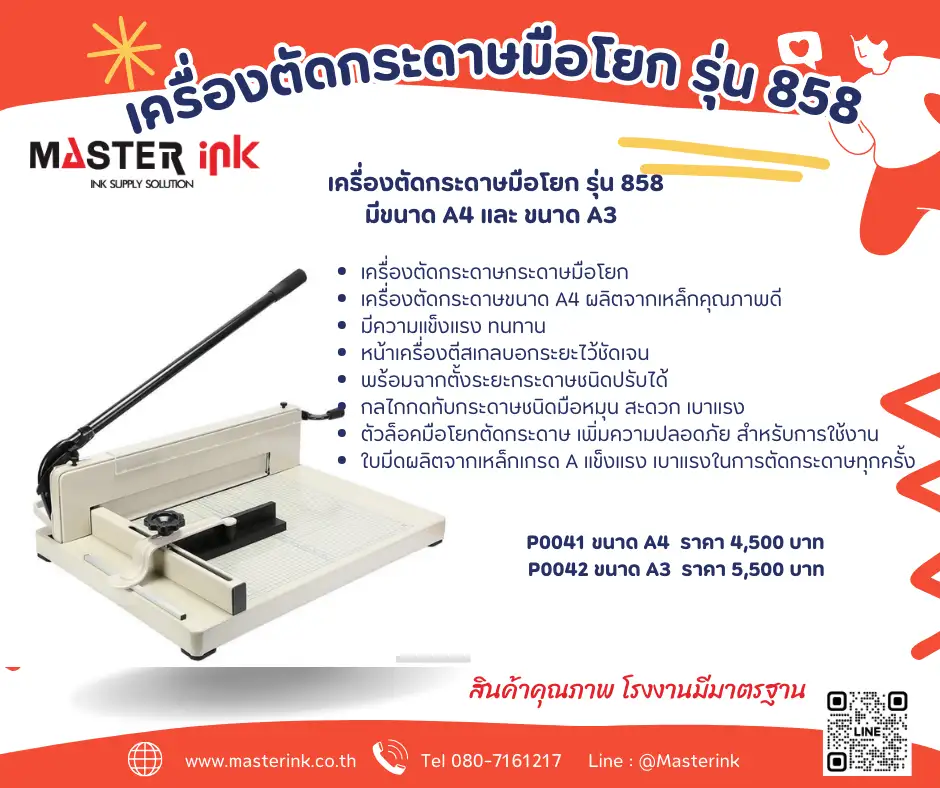 บริษัท มาสเตอร์อิงค์แอนด์พริ้นติ้ง (ประเทศไทย) จำกัด  จำหน่ายและนำเข้า เครื่องตัดกระดาษ เครื่องเข้าเล่มสันกาว เครื่องตัดกระดาษไฟฟ้า เครื่องเข้าเล่ม เครื่องเคลือบบัตร อุปกรณ์สำนักงาน แหล่งจำหน่ายเครื่องถ่ายเอกสารทุยี่ห้อ จำหน่ายอุปกรณ์ศูนย์ถ่าย บริการให้เช่าเครื่องถ่ายเอกสารรายวันและรายปี. ขายหมึกเครื่องถ่ายเอกสาร ขายอะไหล่เครื่องถ่ายเอกสารจำหน่าย เครื่องถ่ายเอกสาร เครื่องถ่ายเอกสารมือสอง ปริ๊นเตอร์ Canon จากยุโรป เช่น สวีเดน เยอรมัน และประเทศอเมริกา จะจำหน่ายเฉพาะเครื่องเกรด A เท่านั้นครับ โดยเราได้นำมาผ่านกระบวนการ ปรับสภาพ หรือ ที่เรียกกันว่า โอเวอร์ฮอล จากช่างที่มีประสบการณ์ การทำงานโดยตรงจาก Canon Xerox มามากกว่า 20 ปี
