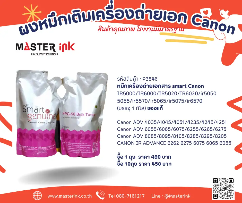 🔥ลด 30.- โค้ด INC5LEL5🔥ผงหมึกพิมพ์เครื่องถ่ายเอกสาร smart Canon ของแท้  รหัสสินค้า : P3846  (บรรจุ 1 กิโล/ถุง)