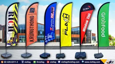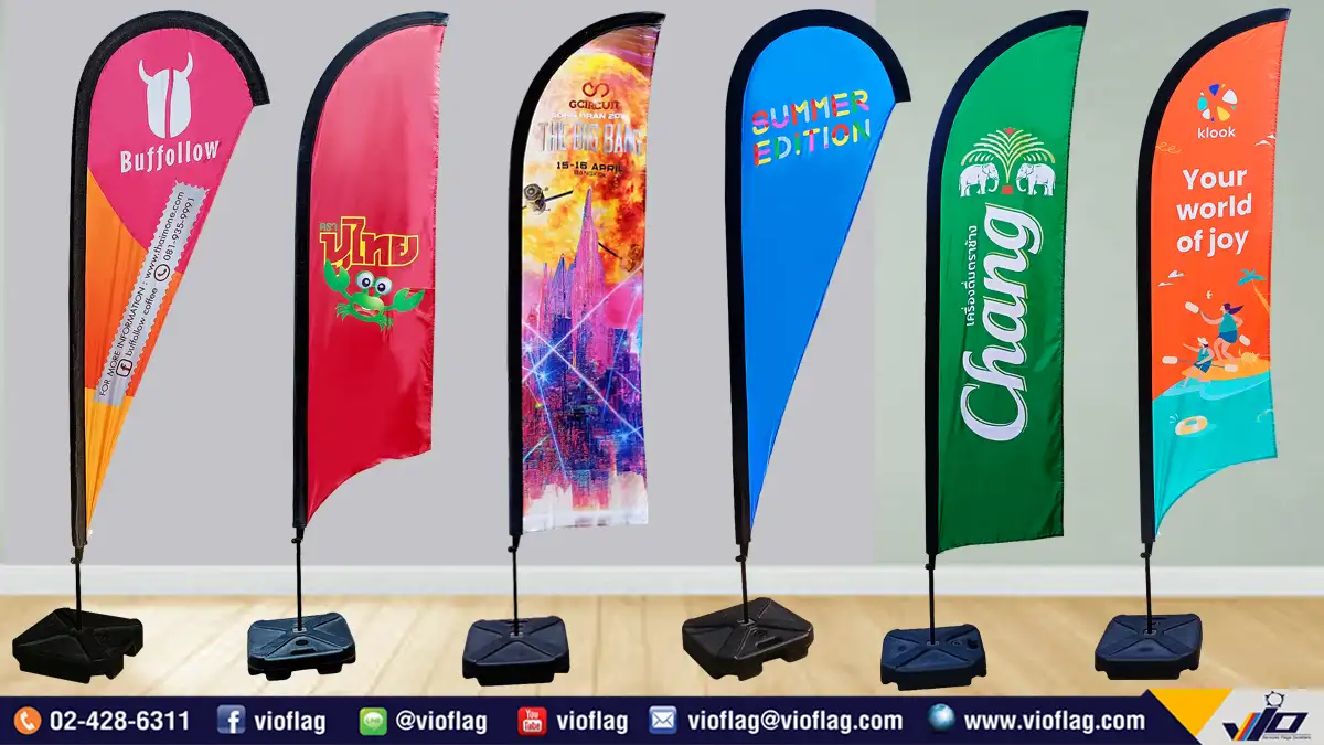 VIO FLAG รับทำธงโฆษณา ธงชายหาด ธงชายทะเล ธงปีกนก ไม่มีขั้นต่ำ งานด่วนมาก