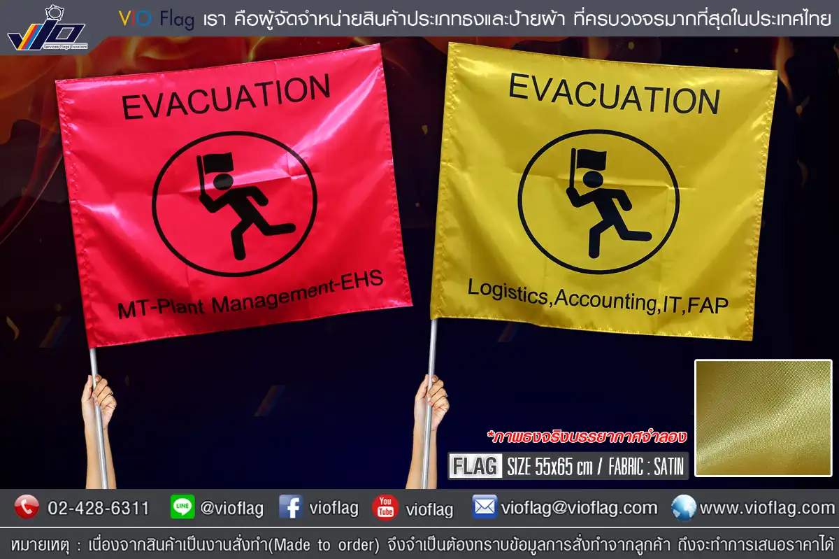 VIO FLAG รับผลิตธงหนีไฟ ธงนำทางอพยพหนีไฟ แบบโลโก้สั่งทำ ทุกจำนวนไม่มีขั้นต่ำ