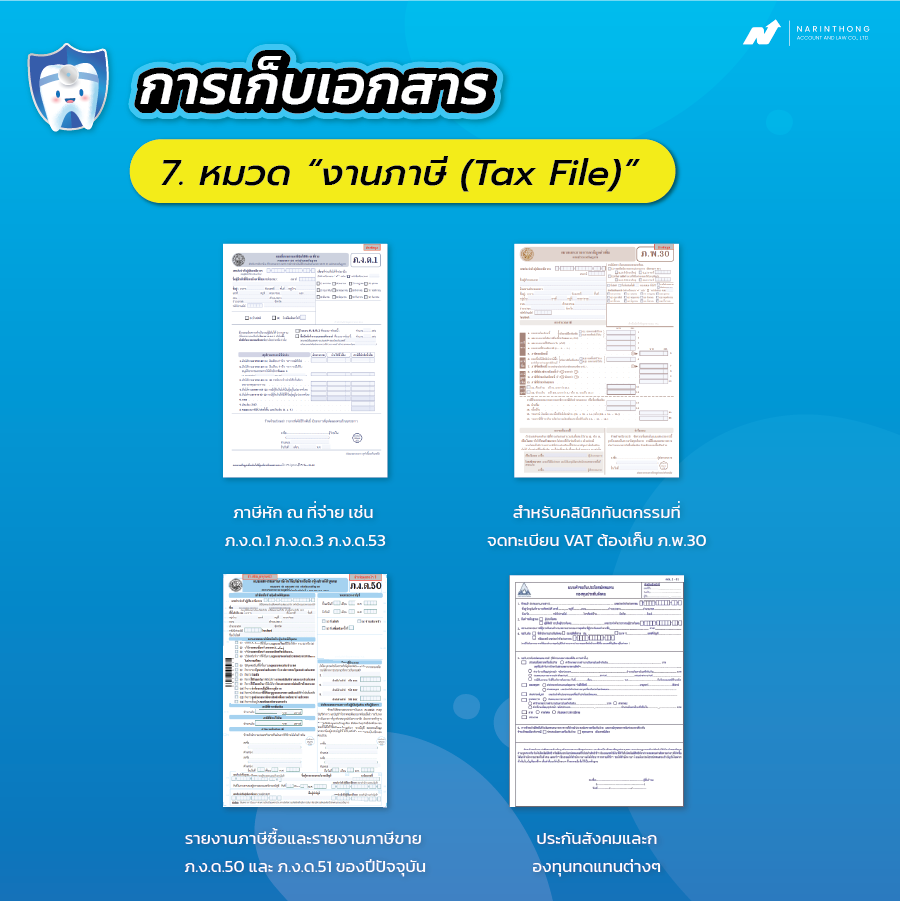 • สำหรับคลินิกทันตกรรมที่จดทะเบียน VAT ต้องเก็บ ภ.พ.30