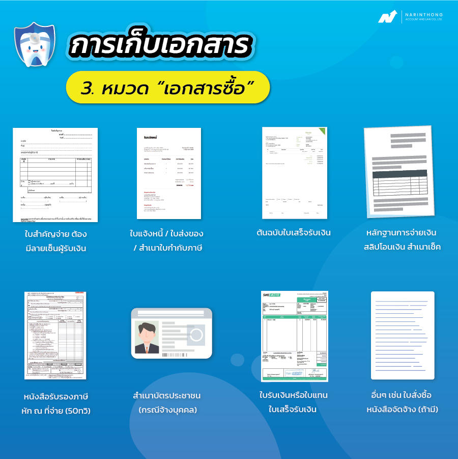 • เอกสารการซื้อ ใบเสร็จรับเงิน หรือใบกำกับภาษี