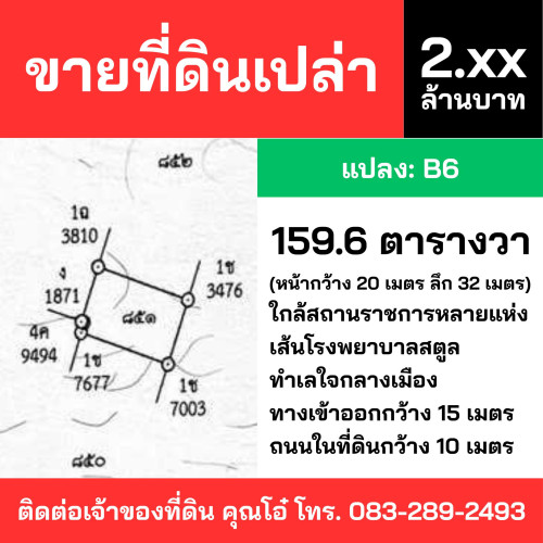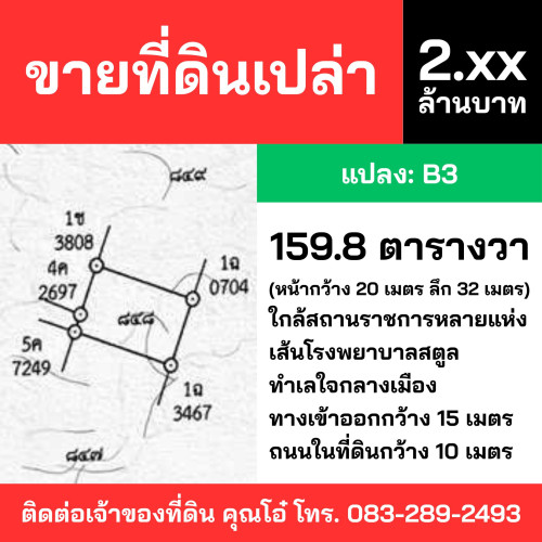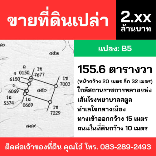 ที่ดินทำเลทอง 155-159 ตร.ว. ใจกลางเมืองสตูล