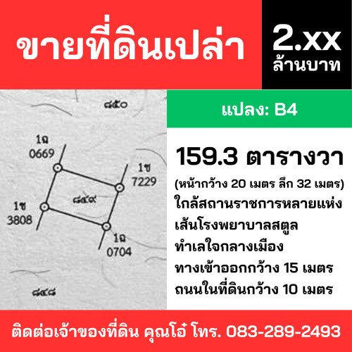 4แปลงสุดท้ายราคาพิเศษ! ที่ดินทำเลทอง155-159ตร.ว. ใจกลางเมืองสตูล ใกล้ตลาด รร รพ.