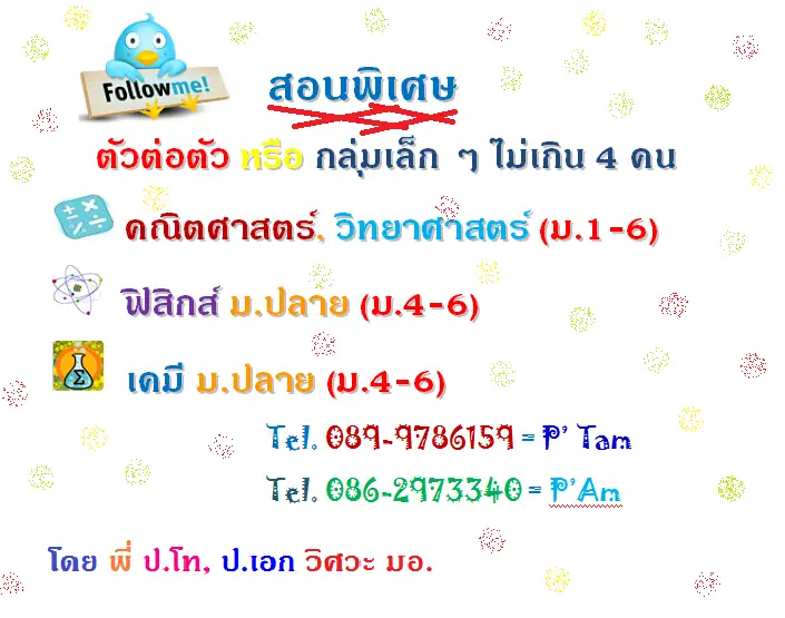 สอนพิเศษ คณิตศาสตร์, วิทยาศาสตร์, ฟิสิกส์, เคมี