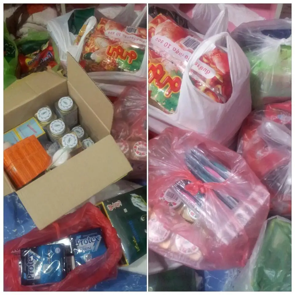 หรือสิ่งของใดก็ได้ที่สามารถจัดเซ็ต ได้  1 พลทหารจะได้ 1 เซ็ต ทีมงาน จะพยายาม รวมรวมของจำเป็น ให้ได้ 1 ถุงย่อย บรรจุลัง ไปให้ได้ลังละ 20-30 เซ็ต เพราะ  จะได้ทำการแจกได้อย่างสะดวก ใน 1 หน่วย เราต้องปิดให้หนาแน่น เพราะ บางจุด จะต้องเอาไปส่งในป่าที่ไกล .... ขอบคุณ ทุกๆ ท่านน่ะคะ  เราจะทำการส่งมอบให้ ทหารในวันที่ 22 กย. ในงานศิษย์เก่า ญ.วค่ะ