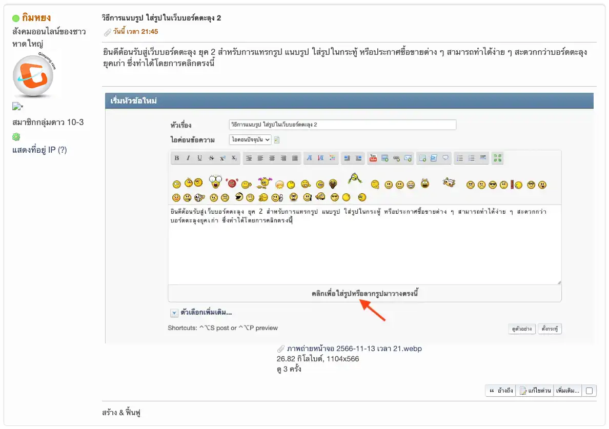 วิธีการแนบรูป ใส่รูปในเว็บบอร์ดตะลุง 2